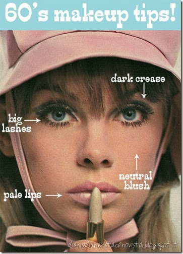 Ma passiamo al look: poiché gli anni sessanta sono passati da un pezzo, ho pensato di riproporre un look retrò modernizzato con alcuni accessori contemporanei di tendenza in questa stagione, come una camicia in jeans e le calze velate. Anche il trucco è una rivisitazione, con l’attenzione sugli occhi, resi meno intensi e ‘da giorno’ con la sfumatura dei colori.